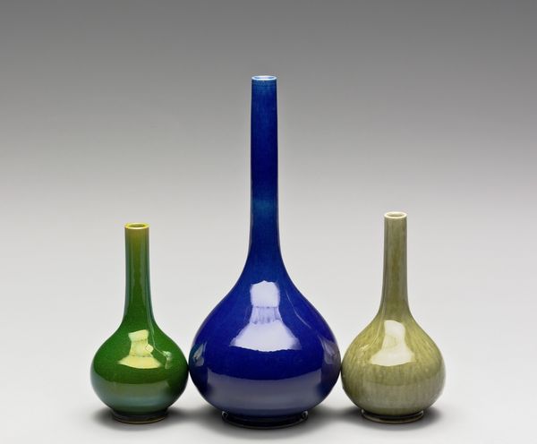 These curvaceous glass sculptures are by Lino Tagliapietra, and what strikes me immediately is how the eye just dances across their surfaces. It's all about this process of continual discovery. Look at how the lines of colour seem to flow and shift, like water rippling over smooth stones. Tagliapietra really understands the material possibilities of glass, pushing it, coaxing it, to achieve these incredible effects. The glass is so thin in places, almost transparent, then thicker, denser, allowing the colour to really saturate. It feels like he's not just shaping glass, but also light itself. It's incredible to think how controlled he must be with the molten glass to achieve such free form results. There's something of Dale Chihuly in the playfulness and scale of this piece, but Tagliapietra brings a particular sophistication, a quiet grace to his work. His elegant sculptures are always surprising, always inviting new ways of seeing.