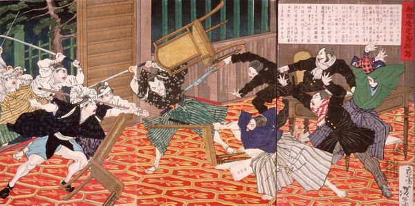 Editor: This mixed-media piece, “At the Far East” by Nicholas Roerich, was created in 1904. It depicts a clash of warriors, Eastern versus… well, other Easterners, perhaps? I'm immediately struck by the intense feeling of conflict. How would you interpret this work? Curator: It's fascinating how Roerich distills the emotional core of conflict through symbolic representation. Notice the figures on the left, almost monolithically armored, recalling ancient depictions of warriors – their faces obscured, becoming archetypes of brute force. What emotions are stirred as you observe these groups? Editor: There’s a feeling of… dread, I think? The armored figures seem unstoppable, impersonal. Then, contrasted with the solitary figure facing them. Curator: Exactly. This lone warrior on the right, clearly individualized with their expressive face, patterned clothing and distinct stance. They embodies something beyond mere combat. Consider the placement of their hands, clutching those weapons, which may suggest both desperation and readiness. What associations do you make regarding these conflicting visual vocabularies? Editor: So, almost like Roerich is playing with recognizable 'types' to tell a larger story? Implying that the personal and the cultural are both always at stake in war? Curator: Precisely. The clash isn’t merely physical, but ideological, perhaps even spiritual. Roerich utilizes both visual stereotypes and culturally specific semiotics to deepen the narrative, triggering pre-existing cultural memories. Look closer—notice any colors which may represent something in particular? Editor: Well, I hadn’t considered the colors, but I see the contrast now. The muted browns and grays of the armored warriors against the brighter colors in the attire of the one… almost highlighting the difference of experience? Curator: Yes! It may hint towards ideas regarding individuality versus collectivity, freedom against constraint, and the endurance of cultural identity amidst overwhelming pressure. It uses accessible imageries to present fundamental themes. Editor: I hadn’t picked up on that, seeing the work only as surface before, so now I recognize there's more depth to explore here. Curator: Precisely, that cultural memory is always layered. The symbols speak volumes if we're willing to listen closely.