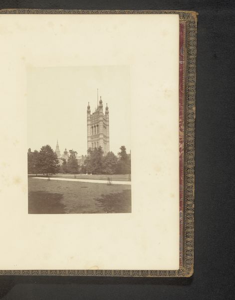 This photograph, titled *Gezicht op de Koutoubia-moskee te Marrakech*, was taken by A.G.A. van Eelde. This capture in grayscale, seems to be rooted in a deep engagement with the act of seeing itself. Look at the way the light plays across the minaret, and how its muted tones define the structure. This isn't just about documenting a place, but more an engagement with the process of perception. The way the light is almost evenly distributed across the sky, drawing our attention to the subtle gradations of grey in the minaret’s architecture. The stark contrast between the solid forms of the buildings and the wispy vegetation creates a really interesting tension. It almost makes me think of Giorgio Morandi and his still lifes, and how they're not just paintings of bottles, but investigations into the nature of form and space. It’s this sense of quiet contemplation that connects Van Eelde's photograph to a broader conversation about how we see and understand the world around us.