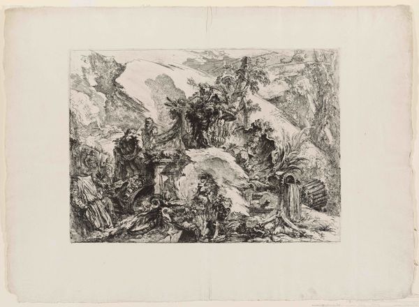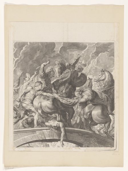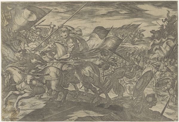 Editor: So, this is Giulio Sanuto's "Christ Walking on Water," created in 1548. It’s a pen and ink drawing. The scene is quite turbulent; everyone in the boat looks so distressed! How do you interpret this work, given the era it was created in? Curator: Looking at this image through the lens of the mid-16th century, it’s difficult to ignore the context of religious upheaval. The dramatic, almost chaotic composition, isn't simply about a biblical miracle. It also reflects the anxieties of a society grappling with shifting religious and political landscapes during the Reformation. Consider the symbolism: Christ, seemingly detached, while those in the boat – representing the Church and its followers – struggle against the stormy waters, against doubt, and persecution. Editor: That’s a powerful reading. So, the “storm” isn't just a literal storm? Curator: Exactly. The tempest becomes a metaphor for the challenges to religious authority. Who is truly in control, and whose faith will prevail? Note how the artist has rendered light and shadow; it really underscores the prevailing uncertainty. Where does ultimate salvation truly lie, according to Sanuto’s print? Is it in earthly power or the divine? Editor: The expressions on the people's faces… some look terrified, some pleading. Do you think the artist takes a position or merely reflects the tumult? Curator: Sanuto avoids a clear-cut endorsement. By presenting the scene this way, he encourages viewers to engage with these questions themselves. The artwork becomes a mirror, reflecting their own hopes, fears, and convictions in a fractured, conflicted world. Think of it as a call for societal reflection on issues that affect everyone regardless of religious background: the nature of belief and the responsibility leaders owe the collective. Editor: I never considered the socio-political climate, and it definitely brings a deeper meaning to this piece. Curator: Precisely. Art doesn't exist in a vacuum. By understanding its historical and social context, we see its full potential. Hopefully it inspires reflection for us, even today.
