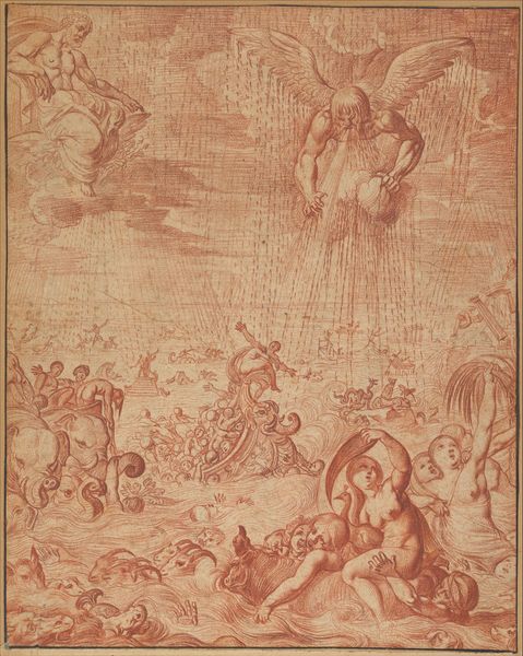 Editor: This is Jacques Callot’s “Assumption of Mary,” from around 1631, an etching in ink. There's a clear contrast between the solid figures on earth and the more ephemeral ones ascending. What strikes me most is how the composition directs our gaze upwards, inviting a sense of reverence. What do you see in this piece? Curator: Callot masterfully uses symbols that resonate across centuries. Note how Mary isn't simply floating, but is borne aloft by a swirling mass of angels, their forms almost cloud-like. This evokes a sense of divine transport, reminiscent of earlier Byzantine depictions of heavenly ascension. But consider also the earthly figures. They are not merely witnesses; their expressions—the raised hands, the tilted heads—imply a shared belief, a cultural memory of the miraculous. How does their posture influence your interpretation? Editor: I think their posture emphasizes the communal aspect of faith; they're united in witnessing this miracle. It’s interesting how the composition places them as foundational to the ascending figure, suggesting the importance of the community in relation to the divine. Curator: Precisely. This grounding emphasizes continuity and shared values. Etchings like these functioned as powerful visual catechisms, reinforcing collective faith through accessible imagery. Notice too the relatively crude and unfinished effect, typical of some of his smaller prints; these weren't necessarily meant for the aristocratic collector. What’s the emotional impact of that accessibility, do you think? Editor: The raw quality makes it feel more immediate, relatable, maybe even personal despite the grand subject matter. It loses some of the polish you’d expect but gains a different kind of strength. Curator: Exactly! It allows a more direct emotional connection. Looking at this, I'm struck by how Callot distills complex theological concepts into a powerful, readily understood image, one that carries centuries of cultural and psychological weight. Editor: I hadn't thought about it that way before. It’s much more than just a religious scene; it's a reflection of shared cultural values. Thanks for pointing that out.