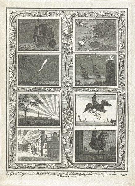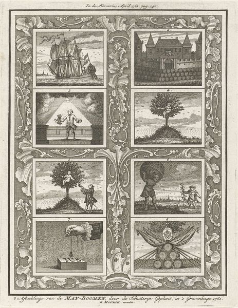 Caspar Jacobsz. Philips created this print, “Meiboom geplant door de Haagse Schutterij,” around 1760. As the title suggests, the print commemorates the maypole planting by the civic guard of The Hague, in the Netherlands. The piece is a visual document of Dutch civic life during the 18th century, a period marked by economic shifts and evolving social structures. The series of images show the Dutch Republic’s global reach through maritime power, astronomical knowledge, a colonial presence in tropical landscapes, justice, and even mythological narratives. Each scene tells a different story, mirroring the diverse roles and responsibilities held by the civic guard within the community. Justice is depicted as a female figure, a common representation that reinforces the role of civic duty and virtue. The print invites us to reflect on the complexities of Dutch identity during this time. What did it mean to be a citizen, and how did visual culture reinforce these meanings? It also emphasizes the shared rituals and civic participation that helped to define collective identity.