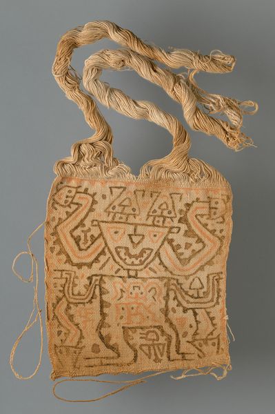 Editor: So, this textile piece, a Paracas Mummy Mask from around 200, which lives here at the Art Institute of Chicago. It looks so fragile, almost ethereal, crafted from weaving. The face staring out is so enigmatic. What do you see in this work, beyond the immediately apparent? Curator: Oh, my dear, this isn't just a mask; it's a portal. A gateway, if you will, to understanding how the Paracas people embraced death, not as an end, but as a transition. This wasn't hidden away in a tomb, mind you, but vibrantly adorned, brought to life through the dance of fibers and dyes. The colours may seem muted now, but imagine them blazing, narrating the deceased's journey! It's a little like they wrapped the spirit of someone into a tapestry. Doesn't it give you shivers? Editor: It really does. I was struck by how abstract it seems, and yet, it clearly represents a face. Curator: Ah, but that's the magic, isn't it? They weren't striving for photographic realism; instead, they're conveying essences. Perhaps a person's spirit animal, or maybe aspects of the natural world they admired. This mask doesn’t just *show* a face, it *invokes* a presence. What story do you think it whispers? Editor: I imagine a tale of resilience, perhaps… of a cycle completed and a new one beginning. It does make me rethink my perspective on ancient cultures! Curator: Indeed. It challenges us to shed our modern skin and contemplate the world through eyes that saw death not as a full stop, but a comma in the grand narrative. A rather fabulous, vividly coloured comma, if I may add.
