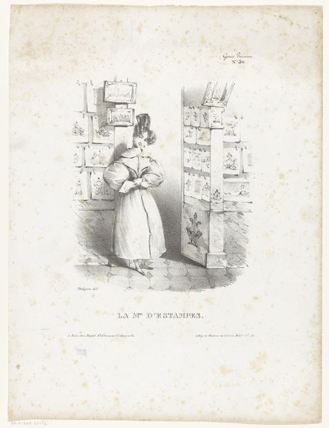 Curator: This is "Spotprent op de Zondagswet, 1886," a print dating back to 1886 by Johan Michaël Schmidt Crans. It is an engraving. The direct translation of the title is “Cartoon about the Sunday Law.” What are your immediate impressions? Editor: There is something haunting about the geometric rigidity in contrast to the softness of the figure. That grid-like apron labeled "Zondagswet 1815"... it confines. There’s sadness here. Curator: The use of printmaking here is really quite relevant to understanding its message. Printmaking enabled widespread dissemination, effectively making it an important political medium, which lends itself to social critique. The "Sunday Law" referenced here restricted work on Sundays. Editor: Exactly, and the means of production impacts the artwork itself. Look at the stark lines achieved through engraving. It allows the artist to reproduce this commentary across a community. This isn't some isolated canvas created in a vacuum; this print had purpose and a target. Curator: This speaks to the economic effects of such a law. The woman’s domestic setting underscores how such regulation infringes upon the labor of those typically in charge of household tasks. The towering stacked molds hint at a stifled industry—perhaps baking, cheesemaking—some trade reliant on labor throughout the week. Editor: The composition itself locks the figure in this space through linear repetition, it is so pervasive. It traps both the figure and the purpose of the work. Also note, in relationship to semiotics, the artist employs written text within the apron's design, as both label and constraint, to immediately signal subject matter. Curator: Indeed, one sees it directly when engaging with the work. It also demonstrates the complicated nature of the debates that likely followed its publication regarding the role of labor, both within and outside the home, and the economic structure within a religious setting. Editor: It brings awareness to the production, material, and cultural conditions embedded in an artistic choice. Overall, the engraving offers a potent visual commentary, a freeze-frame to a societal issue. It's a quiet scream that persists because of the physical means with which the artwork itself was created. Curator: Indeed. It showcases that every component – be it form, materiality, or setting – functions as a vital carrier of meaning.