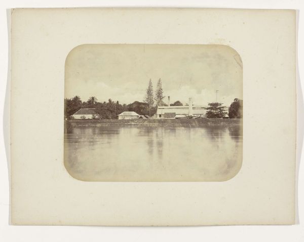 Curator: This albumen print, titled "IJzeren brug over de Kali Brantas," made sometime between 1876 and 1884, offers a fascinating glimpse into colonial infrastructure. Herman Salzwedel captured this scene, which now resides here at the Rijksmuseum. Editor: Immediately striking. The sepia tones imbue it with a sense of faded grandeur. Notice how the horizontal expanse of the bridge cuts through the verticality of the surrounding foliage. A potent visual statement. Curator: Precisely! It’s crucial to understand this bridge wasn’t simply a feat of engineering. The very act of its construction speaks to Dutch colonial ambition—control over resources, transportation, and, ultimately, the people. Look at the repetitive geometric supports contrasted with the organic riverbanks; this embodies the tension between industrial advancement and the local environment. Editor: Yes, and those iron supports! The repetition creates a compelling rhythm, drawing the eye across the water, which almost perfectly mirrors the structure. It is fascinating how the artist organized tone, line and the bridge construction within a strict order which reveals how such visual devices can influence our understanding and emotional response. Curator: It highlights the labor invested. Metal had to be extracted, forged, transported – an intricate network of material processes linked to both local workforces and distant colonial powers. And this image becomes an artifact testifying to that relationship. Consider what this bridge enabled in terms of resource extraction and trade at the expense of indigenous populations. Editor: Without question! This single span and use of iron is in total contrast with its setting of what then would have seemed far flung islands of the Dutch East Indies. Its straightness also draws your eye to its vanishing point. Curator: Seeing this now encourages us to contemplate the lasting impact of such infrastructure projects, and how they transformed both the landscape and social dynamics. Editor: Absolutely! What initially appears as an aesthetic observation opens up much deeper considerations. Curator: Precisely! Its structural order and careful composition really enhance our historical and industrial knowledge here.