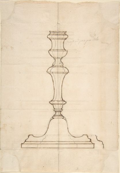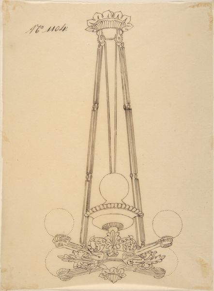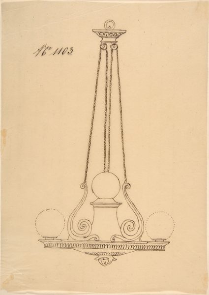 This is a design for a chandelier, carefully drawn on paper by an anonymous artist. We can see how the design process was very hands-on and labor intensive at this stage. The drawing shows a chandelier with a complex structure, featuring curvilinear arms, decorative motifs like shells and leaves, and a central sphere. The level of detail suggests a high-end product, intended for a wealthy client. The design is highly ornamental and theatrical, reminiscent of the Baroque and Rococo styles, which were popular with the aristocracy. Think about the labor involved in realizing this design: metalworkers, glassblowers, and finishers, all contributing their skills to create a luxury object. The finished product, if ever realized, would have been a symbol of wealth and power, embodying the social hierarchies of its time. By considering the design in terms of its material realization and social context, we can appreciate it not just as a drawing, but as a window into a world of skilled labor, economic disparity, and aesthetic ambition.