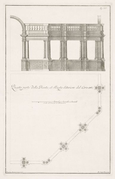 This detailed print presents architectural designs by Andrea Palladio, rendered with precise lines and an almost mathematical clarity. Notice how the composition is neatly divided into sections, each showcasing different aspects of the villas, such as floor plans and facades. The stark contrast between the black lines and the white background emphasizes the geometric forms and spatial arrangements. Palladio's designs reflect a deep engagement with classical proportions and symmetry. The floor plans reveal a carefully considered layout, where rooms are organized around central axes. These designs are not just functional blueprints; they embody a philosophical approach to architecture that seeks to create harmonious and balanced spaces. The facades, with their rhythmic arrangement of columns and windows, further reinforce this sense of order. The use of line and space in this print highlights the intellectual rigor underlying Palladio's work, transforming architectural design into a visual expression of rational thought. It’s a testament to how architectural drawing is not merely representational, but a form of abstract thinking and visual language.
