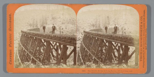 This is a stereoscopic albumen print titled "View of the Giessbachbahn, with the Grandhotel Giessbach in the background," created by Florentin Charnaux. Stereoscopic photographs like this one catered to the 19th-century fascination with travel and leisure. The image presents the Giessbach funicular, a marvel of engineering, ascending towards the Grandhotel Giessbach. This luxurious hotel, set against the backdrop of the Swiss Alps, became a popular destination for wealthy Europeans and Americans seeking relaxation and rejuvenation in an idealized, natural setting. Such photographs played a role in shaping perceptions of Switzerland as a picturesque and desirable tourist destination. But, we might also ask ourselves, what about those who lived and worked there? How were their lives impacted? What kinds of labor made this possible? It is, after all, an image of privilege and leisure, carefully constructed and consumed by a specific class of people. The photograph invites us to reflect on the intertwined histories of tourism, technology, and social class, and on the ways in which landscapes are transformed into commodities.