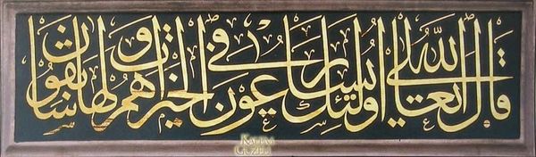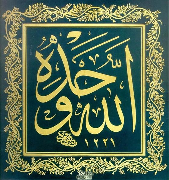 Curator: At first glance, there’s an immediate feeling of depth. The stark contrast of black ink on what looks like parchment or perhaps aged paper evokes a certain solemnity and permanence, doesn't it? Editor: Yes, definitely. Let's contextualize this beautiful example of Islamic calligraphy. The artwork is known as "Levha - Kelime-i Tevhid," attributed to Mustafa Rakim. Curator: Rakim's expertise truly shines through. What strikes me about this work is the fluid, almost dance-like quality of the script. The lines appear to flow effortlessly, while clearly expressing deep spiritual meaning. I'm interested in the symbolic power within this declaration of faith. Editor: The "Kelime-i Tevhid" is the Islamic declaration of the oneness of God – "La Ilaha Illallah Muhammadur Rasulullah," meaning "There is no god but God; Muhammad is the messenger of God." Rakim’s masterful use of line and form makes these already profound words even more visually arresting. The artwork also reveals how calligraphy holds significant cultural weight. Curator: Absolutely. I’m struck by the relationship between the form and the function – it isn't just a message. The presentation of it creates a focal point for religious identity. The artistry elevates what could have been words alone to something emotionally resonant. Think of how it might function as both a declaration of faith, and a call to solidarity for people looking to this work for strength. Editor: The context of Islamic art history emphasizes the absence of figural representation in religious settings, calligraphy becomes central in artistic expression. Figures such as Rakim became public intellectuals, artists, educators, and voices to be reckoned with. They held a certain sociopolitical role, not only expressing power through artistic expression, but also setting trends, dictating taste, and inspiring others. Curator: Precisely. When viewing the piece from a contemporary lens, consider how access, reproduction, and distribution inform meaning today. Its accessibility also affects social and political realities, becoming both unifying symbol and potential lightning rod. Editor: Thank you. It has indeed shown me how visual traditions interact and evolve, as our cultural dialogue becomes that much more informed. Curator: Agreed. Thank you.