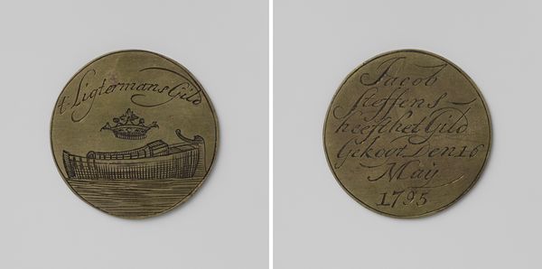 Editor: This is a photograph from 1906, entitled "Doos behorende bij een bronze penning" attributed to Johannes Albertus Adolf Gerritsen. It’s a simple image of a small, round box, yet it evokes a sense of intimacy. What draws my eye is the script, almost like an old calling card, and how perfectly centred the box sits in the frame. As an iconographer, what do you see in this photograph? Curator: I see a fascinating microcosm of early 20th-century aesthetics. Consider the box itself. Its circular form echoes ancient containers—chests that hold precious things like jewels, memories, even human remains, connecting this ordinary object to layers of cultural significance. The inscription – "J.A.A. Gerritsen, Amsterdam" - this isn't just branding, is it? It’s a declaration of identity and origin. Editor: That's true, it feels like the box and its label are working together to signal its place. Curator: Precisely. Consider also the sepia tones of the photography itself; aren't they doing a lot of work here? Sepia inherently creates an aura of nostalgia, immediately framing the box within the context of the past. It turns something potentially mundane into a cherished artifact. What associations do you make with the additional decorative line work, the flourishes below the script? Editor: It seems purely decorative; suggesting style and care, perhaps? Curator: Perhaps, but decorative elements can hold hidden narratives. Think of how heraldry used stylized images to represent family lineage and accomplishment. In this context, the swirls might reflect aspirations toward artistry or social status. It begs a fascinating question: what did Gerritsen want this box, and its photograph, to communicate about himself? Editor: So you're saying even something seemingly straightforward, like a photograph of a box, can be packed with symbolic meaning, hinting at deeper cultural narratives. Curator: Absolutely. The seemingly simple can often reveal the most profound insights into cultural memory and identity. That's what makes exploring these images so compelling.