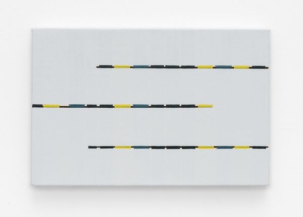 Curator: Emma Kay’s "Worldview," held here at the Tate, is a rather large image, nearly two meters wide, composed of hundreds of small, grey rectangles on a white background. Editor: The visual effect is mesmerizing, like an endless series of fragmented memories trying to coalesce, but never quite succeeding. The grid-like structure feels rigid, yet the variations within each rectangle offer some release. Curator: The blocks are actually compressed text; each contains a summarized version of a different encyclopedia entry. Kay is known for her exploration of how we organize and recall information. The grid becomes a visual metaphor for systems of knowledge. Editor: Interesting. The scale and uniformity create a sense of the impersonal—a vast repository of information, perhaps even overwhelming. It invites us to question how meaning is constructed and preserved. Curator: And it's meant to. Think about what it means to try and capture the 'world' in blocks of text. What gets included and excluded? How do our individual perspectives get lost or amplified in such a format? Editor: Right, it reminds me that systems, no matter how comprehensive, are always selective. A really interesting piece that challenges our understanding of objective knowledge.