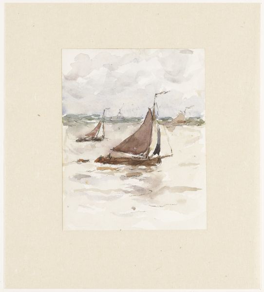 Carel Nicolaas Storm van 's-Gravesande made this small, dreamy watercolor of the Maas near Rotterdam in 1902. The muted color palette is carried by light and shadow, creating a feeling more than a description. There’s a tactile quality to the way the washes pool and blend, giving the impression that you could reach out and touch the dampness of the scene. Look at how the dark blues and greens of the boat in the foreground contrast with the hazy grays of the distant sailboats. The artist uses the transparency of the watercolor to create a sense of depth and atmosphere. I keep coming back to the way the artist has handled the reflections in the water. They’re not precise, but they capture the way light dances on the surface. This piece reminds me of James Whistler. Both artists were interested in capturing fleeting moments and atmospheric effects. It's a reminder that art isn't always about perfect representation, but about capturing a mood or a feeling.