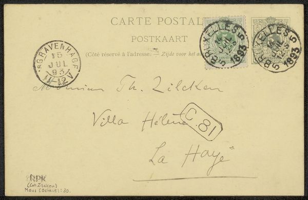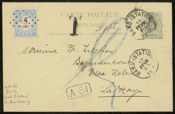 This is the back of a briefkaart, or postcard, sent by Octave Maus to Philip Zilcken sometime around 1900. It’s made, obviously, of paper: industrially produced, then printed with the form for address and postage. But let's think about what this simple object tells us about the world it inhabited. The postal system itself was a key component of burgeoning capitalism, allowing messages, and therefore business, to travel efficiently. The handwritten address speaks to a level of personal connection, yet the printed elements signal standardization and mass communication. Even the stamps, small as they are, represent state power and fiscal control. Consider also the labor involved: from the papermakers and printers to the postal workers who handled this card. All of these things are easy to overlook, but crucial to understanding the social fabric of the time. So, even a humble postcard can be seen as a complex artifact, reflecting the material conditions and social relations of its era. By considering these factors, we can appreciate how thoroughly art and design are embedded in the wider world.