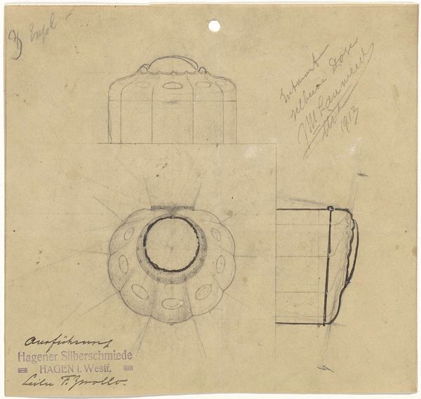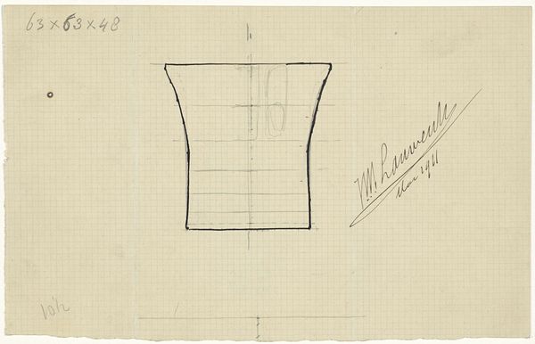 This is Mathieu Lauweriks' "Ontwerp voor een doopbeker," a design for a baptismal font. You can see the initial lines sketched out on what looks like graph paper. I find myself drawn to the grid, which is visible beneath the sketch, and how it relates to the cup itself. The sketch isn’t quite a perfect rendering; we see that it is made by hand, the wavering verticals and horizontals. Maybe this is what makes it so appealing. The grid makes me think of Agnes Martin and her own obsession with the line, of a structure just barely holding. There's a tension between the precision of the grid and the freehand sketch. It speaks to the way we try to contain or define something, like faith, within boundaries. The materiality of the paper and the pencil line is so apparent, so upfront. This piece reminds me that art is often about the process, the journey of creating, more than the final, fixed image.