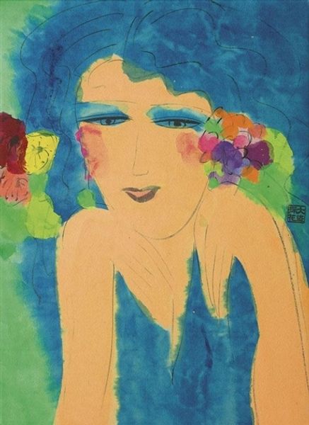 Curator: Let's take a moment to consider "I See You" by Walasse Ting, an acrylic on canvas which showcases the artist’s distinctive pop art sensibility. Editor: Well, my initial reaction is... vibrant! The saturated yellow backdrop practically pulsates. It feels energetic, almost aggressively cheerful, doesn't it? Curator: Indeed. Ting's use of high-key color is characteristic of his oeuvre. What I find compelling here is how the flatness of the picture plane, typical of Pop Art, coexists with the energetic drips and splatters, adding a dimension of spontaneous gesture. It complicates any straightforward reading. Editor: Complicates it in a fun way! It's as though he's acknowledging both the commercial aspect of the genre, its ties to advertisement, and the artist's subjective intervention. Pop art with, dare I say, personality. How do we position Ting historically? Curator: Ting was working internationally during a time of enormous cultural exchange, living and working across continents, notably within the context of the CoBrA group’s legacy, where experimentation was so prized. One has to look at the artist's life in-between cultures to understand it, I feel. There’s a negotiation in these pictures between traditions, histories and styles. The application of his medium adds interest as well; the splatters and pools create tension, contrasting with flatly-applied blocks of color. Editor: Yes, and consider the gaze – "I See You." Who is seeing whom? The female subject, or the viewer? Is she passive, presented for our consumption, or is there something subtly challenging about her directness? It really encourages a dynamic between artwork and audience, the political power of an image, in essence. Curator: It’s a clever question of power and its gaze, and you could delve further into feminist readings in connection to this topic. Her exaggerated, flattened features almost recall mask-like qualities, bringing to mind the complexities of representation itself. Is this truly a "portrait" in the traditional sense, or is it something far more coded? Editor: Precisely! I find myself looking past its obvious stylistic appeals, past its genre association, and into the politics of image-making itself, making the canvas feel almost unsettling at times, given the vibrant background and heavy use of bright red colour. A rather unique intersectionality comes through. Curator: Indeed. Thinking more on its composition, and Ting's strategic balance between accident and intention is remarkable. His bold strokes carry such rhythm and verve! Thank you, this has provided a deeper understanding and different angles to consider, always useful. Editor: A vibrant consideration, indeed. Thanks to you, too! It is interesting to note how historical interpretation can offer so many various considerations of form and meaning.