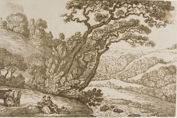 Curator: Allart van Everdingen's "Winding River" presents a seemingly placid scene, doesn't it? But I find it charged with a quiet tension. Editor: Yes, the scene appears tranquil. But look at how the trees are gnarled, their branches twisted—symbols of resilience, perhaps, in the face of unseen forces. Curator: Precisely! Consider Van Everdingen's historical context. Born in the Dutch Golden Age, he was surrounded by trade, colonial expansion, and the complex relationship between the Dutch and the natural landscape. Editor: The river itself holds significance. Water often represents the flow of life, change, and the subconscious. Is that boat carrying laborers or travelers, adventurers, or refugees? Curator: It’s fascinating how a seemingly simple landscape can carry such weighty historical and symbolic implications. Editor: Indeed. It reminds us that even the most serene image can be a repository of deeper meaning.