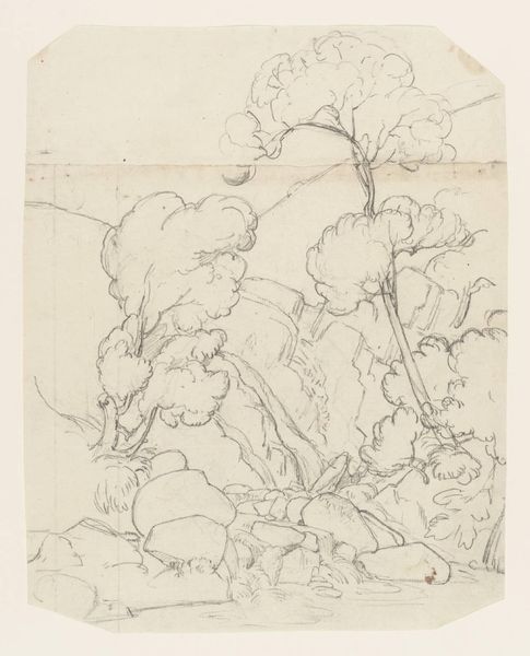 August Lucas created this drawing, called 'Two Trees', using graphite pencil on paper. On first glance, the drawing may seem like a simple sketch. However, the artist's careful attention to line weight and detail reveals a deep understanding of the subject. Lucas masterfully captures the organic forms of the trees using only a pencil. The varying pressure applied to the pencil creates subtle variations in line thickness, giving depth and dimension to the composition. Look closely, and you will see how he meticulously renders the intricate network of branches and foliage. The soft, grey tones of the graphite create a sense of atmosphere, evoking the quiet stillness of the natural world. The choice of materials, the subtle pressure of the pencil, and the careful control of lines all demonstrate the artist's sensitivity to the subject and his mastery of the medium.