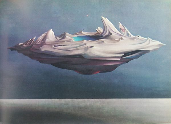 Curator: Immediately, I am struck by the buoyant feeling of this composition. It feels like a dreamscape, a collection of weightless forms drifting across a field of sunshine. Editor: Here we have Vangel Naumovski's "Horizontal Galaxy," created in 1980 using acrylic paint. What I find most fascinating is its exploration of form and abstraction. The interplaying shapes and colors defy any concrete representation, drawing the eye into a purely aesthetic experience. Curator: Indeed, the composition offers a beautiful interplay between geometric elements and softer organic shapes. Do you think it succeeds as a “galaxy?" Are we looking into deep space? Editor: The title offers a lens, certainly. But consider the historical context. Naumovski painted this in a Yugoslavia experiencing its own internal tensions. Might these floating forms speak to the disparate elements within that society, the potential for both harmony and fragmentation? Curator: That's a compelling reading. I still find myself returning to the formal elements. Note the subtle gradations of color and how the delicate white lines function almost as paths connecting distinct forms. They create this kind of optical, almost illusory effect. The interplay really transcends mere representation. Editor: It begs the question, of course: Did it transcend its political moment as well? Did abstraction allow artists like Naumovski a way to reflect social realities indirectly, circumventing more overt forms of critique that might have been censored? Curator: I hadn’t considered that but what's very clear, standing here now, is that it operates on several levels simultaneously. It presents aesthetic enjoyment while leaving room for political analysis. Editor: So, what appears at first glance as an almost playful abstraction turns out to be deeply embedded within both an artistic tradition and a specific moment in time. A fitting end note, don't you think? Curator: Precisely! "Horizontal Galaxy" offers a chance to understand the rich dialogue between abstraction and experience.