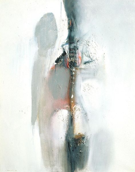 This painting, “Face” by Oleg Holosiy, looks like it was made with oil paint, and maybe some other stuff mixed in. The way the paint is applied looks quick, like he was really going for it, not worrying too much about getting it perfect. I like how the surface has all these textures and colors. There's a lot of black and white, but then you see little bits of yellow and blue popping up. And the paint itself looks kind of crusty in places, with all these cracks and drips. It’s almost as if the painting is alive, with its own history and layers. Check out that one little green eye. It’s so subtle, but it’s really staring at you! It’s like, is the painting looking at me, or am I looking at it? I’m reminded of Francis Bacon’s paintings of faces. Both artists had a way of capturing something raw and intense, like the face is a mask that’s about to slip off. Painting is a conversation, and each artist builds on what came before, pushing it in new and unexpected directions.