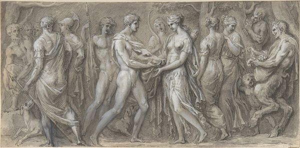 Editor: This ivory relief, "Bacchanaal" by Ignaz Elfhafen, dating from 1869 to 1887, has a distinctly classical feel, with its depiction of figures seemingly lost in revelry. It’s like a snapshot of ancient decadence. How do you interpret the imagery in this piece? Curator: This "snapshot," as you call it, is indeed a window into cultural memory. The Bacchanaal isn't simply a drunken party; it’s a potent symbol. Notice the grapes, the flowing wine, the ecstatic poses – these aren't just decorative elements. They're signifiers, embedded within a larger narrative of Dionysian freedom and release from social constraints. Look closely at the central figure—a satyr, half-man, half-goat. What emotions does he evoke? Editor: He definitely brings a sense of untamed wildness. It’s like he represents the instinctive, perhaps even primal side of human nature. Curator: Precisely. This juxtaposition—civilization versus primal instinct—was a recurring theme throughout the 19th century. Academic artists like Elfhafen frequently mined classical antiquity to explore these dichotomies. And that impulse toward revelry? The shared cup? The lyre being played? Those are cues about unity, but also the blurring of identity. What societal rules might they be playfully rejecting? Editor: Perhaps rules about restraint or traditional social roles? The figures definitely appear liberated, almost without a care. It is fascinating how these symbols communicate layers of meaning beyond the initial depiction of a wild party. I didn't quite grasp the commentary behind that feeling. Curator: These enduring symbols and narratives reflect a continuity in the human psyche and society's perpetual negotiation with freedom. By examining such artifacts we tap into a cultural bloodstream that transcends mere aesthetics.