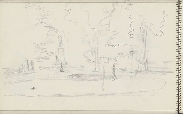 Curator: Carel Adolph Lion Cachet's "Aangemeerde boot aan een steiger," a drawing from around 1930 housed here at the Rijksmuseum, offers an intimate glimpse into the artist's process. The medium is ink on paper. Editor: Intimate indeed! It feels like a visual whisper, almost voyeuristic. All those tentative lines – as if the artist barely touched the paper. A beautiful sort of uncertainty. Curator: Precisely. Notice how Cachet uses line weight to define form and space. The cross-hatching, particularly around the boat, creates volume. The geometric precision with which the scene is outlined brings a structural intensity to this simple harbor. Editor: Oh, "simple harbour" doesn't quite cut it for me. I read this as a space of pause, perhaps a quiet anticipation. A boat moored signifies journeys both taken and dreamt of, wouldn’t you say? Look at how it overshadows the light, this boat is ready to depart anytime, I can feel the call! Curator: An interesting perspective. One might equally posit that the scene’s deliberate lack of sentimentality focuses attention on the intrinsic formalism. The composition, see, guides our gaze from the elaborate lamppost up the pier to the hulking presence of the ship, organizing the image into three very clear spatial arrangements. Editor: Perhaps but I keep coming back to that light! And those gestural, almost frantic lines in the water... there's an energy here, barely contained within the economy of the medium. For me, formalism dances with a deep sensitivity that seems true of sketchbook work in general. It invites viewers in precisely with the perceived effortlessness and freedom. Curator: Indeed, though "freedom" implies a lack of constraint I don't see at all. What is striking to me about this work is how its formal restraint lends a sort of quiet austerity to what could otherwise have become a saccharine waterfront scene. Editor: It's interesting how we find such different experiences in the same piece. For you, restraint; for me, a barely suppressed longing! I guess that’s part of the beauty.