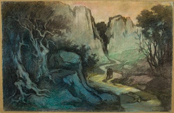 Curator: This is Théophile Alexandre Steinlen's "Vision de Paris" from 1898, created using charcoal, pencil and drawing. What do you make of it? Editor: It’s certainly a striking piece. I’m immediately drawn to the contrast between the monumental, almost god-like figure in the foreground and the city in the background. There's a lot going on; so much movement in the bottom. What should I be paying attention to? Curator: Let’s consider the materials. Steinlen chose charcoal and pencil, media easily accessible and associated with working-class imagery. Look at the texture, the blending – how does this affect the overall impact of the work? Could another medium express similar intent? Editor: The softness of the charcoal creates a dreamlike quality, but also perhaps a grittiness. It's not idealized, it's messy, real, which adds to that impression of realism despite the overall symbolism of the composition. What does the city symbolize? Curator: And consider Steinlen’s political leanings at the time. The huddled figures could be an overt illustration of society at this time, perhaps highlighting class division in fin-de-siècle Paris. What is he saying about the human condition? Editor: I can now appreciate this 'Vision of Paris' more through a socio-economic lens. Steinlen masterfully uses his craft to comment on the stark reality of urban life in that era. Curator: Precisely! Understanding his choices about material and production allows a deep appreciation of his commentary. How does this inform your current artistic thinking? Editor: By prompting questions on art creation, "Vision of Paris" reminds me that art is made for the public through materials representing social messages.