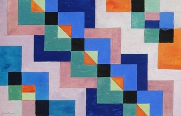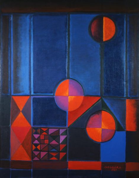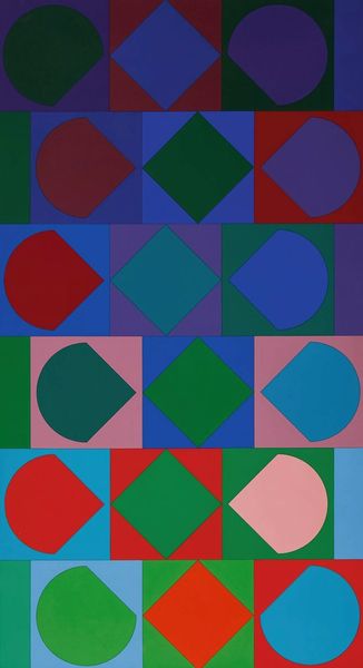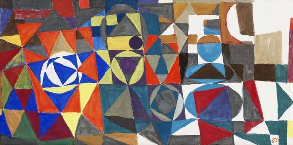 Curator: Oh, this piece by Manuel Cargaleiro from 1969, aptly named "FAG – 16 69", well it just sings to me. Doesn’t it look like the artist unlocked some secret, joyful code? Editor: My first impression is how its geometric abstraction reads like a visual manifesto of its time, a period brimming with counterculture movements. It's playful, yes, but I can’t help but consider it as a product of the late 60s questioning of structure and order. Curator: Exactly! There's such deliberate freedom. I imagine Cargaleiro just dancing with the paint. You see the echoes of the traditional Portuguese tilework, the azulejos, that became his signature? It's like he plucked them from a sun-drenched Lisbon wall and rearranged them in a dream. Editor: And that tension between tradition and modernity speaks volumes. It raises questions of cultural identity, displacement, and continuity. Notice the color palette; it's almost muted, clashing a bit with the bold, flat planes of color he utilizes to build the composition. How do these juxtapositions reflect a changing society, negotiating tradition and new perspectives? Curator: Ah, but the clashes are what give it its zing! They jolt you awake. To me it's about simple beauty, about celebrating form and colour for their own sake, perhaps finding solace in basic geometry amidst chaos, don’t you think? A visual meditation? Editor: It certainly invites meditation. Yet I also read this as a structured deconstruction, mirroring perhaps, contemporary socio-political theories that questioned power and privilege through fragmentation. Does the very act of abstraction here function as an attempt to liberate form from conventional meaning? Curator: (Laughing) Well, you can read all that into it if you want, my friend! Me, I think it’s just nice to look at! It stirs up this delightful little hum of contentment within. Though now that you mention the fragmentation, the shapes DO appear like pieces wanting to break free from their grid, don’t they? Editor: Precisely. Which begs us to ask, what freedoms and limitations do these structures, in both art and society, propose? This isn’t just aesthetics. It’s about engaging with cultural and political languages and considering the historical contexts of the artwork. Curator: You've nudged my thinking! From mere playful delight to deconstruction and historical tension. Suddenly, it holds so much more. Editor: That is what makes encounters with art such a dynamic exchange. It reshapes and recalibrates!