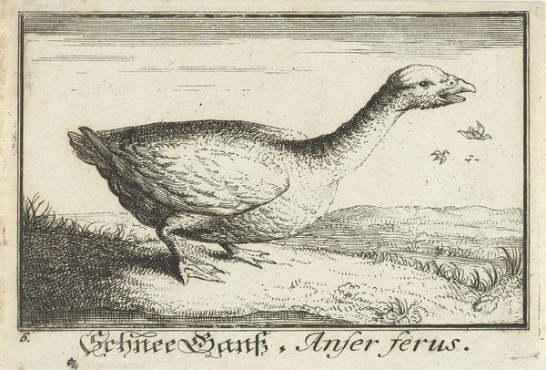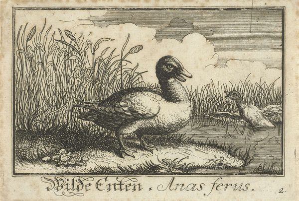 This small, anonymous etching presents a swan in its natural habitat, sometime in the early modern period, likely in the Netherlands or a region with strong Dutch cultural influence. The image provides a window into the era's evolving relationship with the natural world and the development of natural history as a discipline. The swan, meticulously rendered, sits amidst reeds, with other swans visible in the background. The presence of both the common name "Schwan" and the Latin "Cygnus" indicates an emerging scientific approach to cataloging the natural world that was part of an international scholarly culture. This image reflects the growing interest in observing, documenting, and classifying animals as part of a broader intellectual movement. To fully understand the artwork, we can consult early printed books on natural history, travel accounts, and emblem books, which can shed light on how swans were understood. Examining the history of scientific illustration and the networks of scholars and artists can reveal the social and institutional context in which this image was produced.
