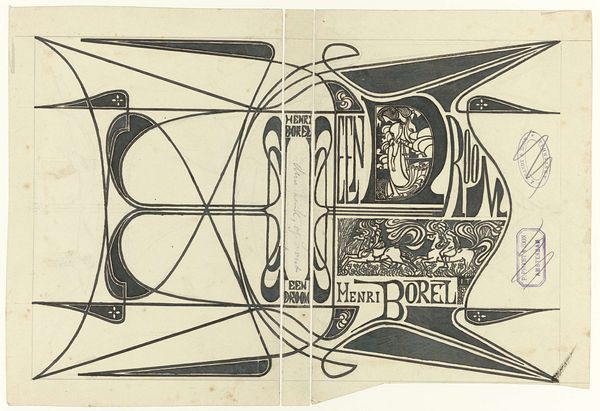 Jan Toorop designed this cover for Louis Couperus's "Metamorphosis" in 1897 using pencil and black ink. The design immediately draws your eye through its curvilinear lines and stark contrast between solid black forms and white space. Toorop uses a formal vocabulary deeply embedded in the visual language of symbolism and Art Nouveau. The composition shows decorative, stylized motifs, particularly the use of interweaving lines and organic shapes, evoking growth and transformation. The figure on the right cover panel with her upturned face is adorned with these flowing lines that seem to emerge from the ground and envelop her, suggesting the metamorphosis of the title. What makes this design remarkable is the abstraction of natural forms into repetitive patterns. The cover thus functions as an exploration of semiotic interplay, where forms act as signs, encouraging viewers to decode the metamorphosis.