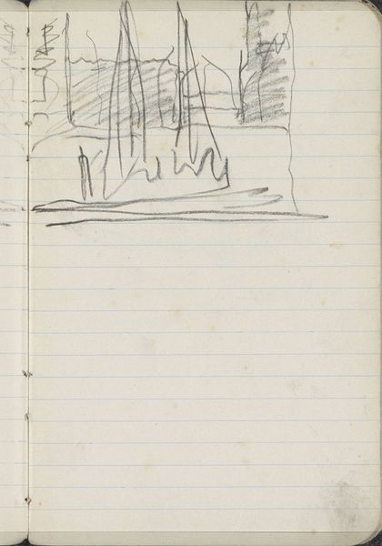 Willem Bastiaan Tholen made this sketch of sailboats on open water with graphite on paper. The composition is stark, primarily using vertical and horizontal lines to create forms. Notice the subtle texture of the paper and the varying pressure of the graphite which give a sense of depth and movement. Tholen uses a semiotic system of signs to represent boats, water, and sky. But he does so with minimal detail. This reduction to essential forms invites us to consider the underlying structure of representation itself. The drawing challenges our conventional understanding of space and perspective. The visual language of the sketch engages with broader philosophical questions about how we perceive and interpret the world around us. The sketch is not just a depiction of sailboats, but an exploration of the act of seeing and the codes we use to translate visual experience into meaning.