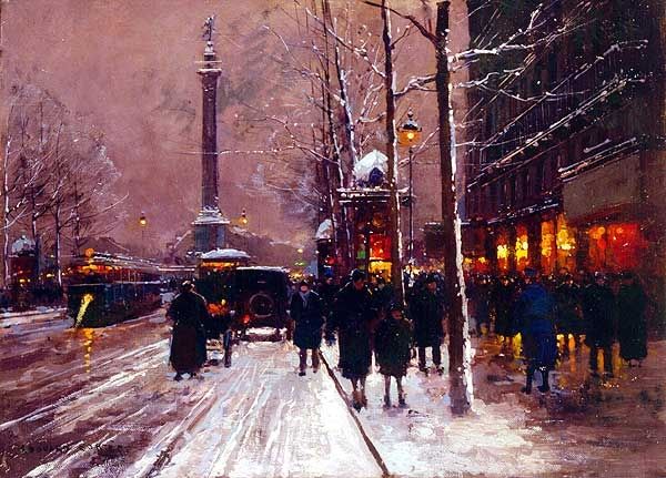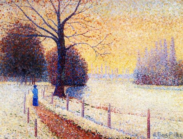 Thomas Kinkade painted this Town Square with oils, probably sometime in the late twentieth or early twenty-first century. It's mostly oranges and browns, which are colors I understand, colors of the earth. And it’s very process oriented; you can see how the paint has been layered and blended. Looking at the surface, it feels pretty smooth, not too much thick impasto. I notice how the light seems to glow from within, especially in the sky. The texture almost seems to be built up, layer by layer, glazed and rubbed to get that luminescence. The bare branches of the trees reach up like veins against the orange sky. It reminds me a little bit of Edward Hopper’s paintings of small-town America. Ultimately, art is this conversation. It's a mix of memory, emotion, and visual play. It doesn’t have to be perfect. It just has to be honest.