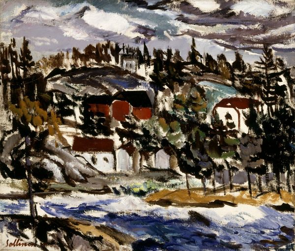 Curator: Standing here, we’re observing Ernst Ludwig Kirchner’s “Sertigtal im Winter,” painted in 1924. Kirchner, of course, was a prominent figure in the German Expressionist movement. This artwork uses watercolor. Editor: My initial impression is a feeling of starkness despite the vibrant hues. The colours are jewel-like, almost aggressive, and yet the landscape itself feels isolated, quiet. Curator: Expressionism as a movement sought to represent subjective experience and emotional intensity, which we see plainly here. The subject matter, Sertigtal in the Swiss Alps, provided a dramatic landscape ripe for such expressive interpretation. There are certain societal anxieties that surface within it. Kirchner uses non-naturalistic colors and distorted forms to communicate psychological tension that I associate with post-WWI Germany. Editor: And winter itself carries a wealth of symbolic associations—death, dormancy, introspection. The sharply angled, almost violent strokes of the brush create this sense of disquiet that underscores the symbolism of winter itself, yes? Curator: Absolutely. This unsettling tone may reflect Kirchner's own mental state as he struggled with health issues and the lingering trauma of war, situated within the political turmoil of interwar Germany. I think in viewing Kirchner, it's also vital to note the larger expressionist movement and the degree to which this imagery engages with anxieties pertaining to modernity and selfhood. The perspective we occupy as the viewer emphasizes feelings of disconnect with what is depicted. Editor: The colour palette seems deliberate in the way blues, purples and blacks seem to emphasize the coldness and brutality, which adds a spiritual dimension. Blue is so often linked to sadness and reflection; winter becomes this inward time that aligns so perfectly with emotional pain. Is it fair to assume his internal trauma informs such creative output? Curator: His experiences certainly bled into his art, as he transformed personal pain into universal statements. Editor: Thank you. Viewing with that in mind, my own relationship to it has gained greater resonance. Curator: Agreed. It's vital to approach these paintings aware of the environment in which they come into existence.