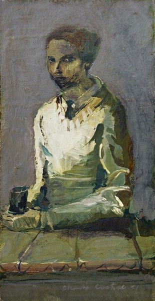 Curator: Here we have Alexander Roitburd’s "Self Portrait" from 2007, rendered in oil on canvas. My immediate reaction is one of… unsettling tranquility? The vibrant greens are almost at odds with the subject matter. Editor: Tranquility is an interesting take. For me, it's the raw physicality that hits first. The thick impasto application of the oil paint makes the figure seem almost sculpted, like a monument built from viscous material. What statements are being made about the materiality and substance of the art process itself? Curator: Well, consider the sociopolitical landscape in Ukraine during that period. The orange and green could refer to political factions at the time, while the art market was flourishing amidst ongoing turbulence. Was Roitburd using the neo-expressionist style as a reflection of a society’s angst about value and consumption? Editor: Interesting that you bring that up; it really speaks to your interest in the historical forces present. Looking at the ropes binding the figure's wrists, it emphasizes the power dynamics inherent in production. Are we considering, perhaps, the restraints put on artistic labor during that time? Curator: Absolutely! The museum becomes a battleground for narratives and it certainly challenges how these artworks achieve cultural prominence or relevance and, also how society shapes our interpretation. I can only guess the power structures involved in Ukraine at the time, specifically influencing this visual piece. Editor: And think of how art history, art institutions and markets can turn raw materials and processes into symbols of prestige. Roitburd's "Self Portrait" could also highlight a kind of cultural and self-commodification, using one's image and emotions as a form of marketable identity within contemporary art. Curator: It's powerful how the artwork prompts us to ask a question regarding whose stories the institutional narrative has highlighted in history. It invites us to re-evaluate historical interpretations and museum practices, thus highlighting critical societal issues. Editor: Definitely food for thought on the artist's part. I think, to wrap it up, we can confidently consider what tangible elements in this artwork and the environment that produced it teach us about Roitburd's art and identity, don't you think? Curator: Certainly, this allows us to move towards a larger understanding regarding art's engagement with wider political, historical and social conversations and meanings.