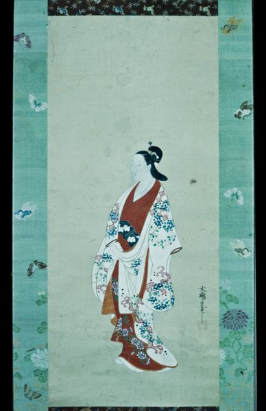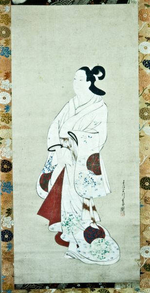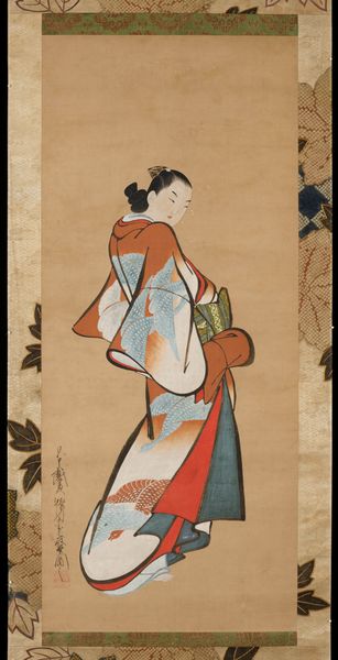 Hishikawa Moronobu created this ink and color on paper artwork called Beauty Looking Back. Notice the woman’s elaborate kimono, adorned with intricate patterns of flowers and geometric designs. Historically, such garments were not mere clothing, but powerful indicators of social status and personal identity. The way she tilts her head, a gesture of both modesty and invitation, resonates across cultures. We find echoes of this pose in classical sculptures of Aphrodite, or even in the demure glances in Renaissance portraits. It is interesting to observe how the symbolism embedded in this woman's attire and gesture evolves. The kimono's floral motifs, initially symbols of ephemeral beauty, echo across time in art nouveau designs, transforming into emblems of modernity. Through such visual echoes, we gain insight into how cultural memories persist, subtly influencing our emotional and psychological responses to images across centuries. The beauty looking back, a timeless invitation, engages viewers on a deep, subconscious level.