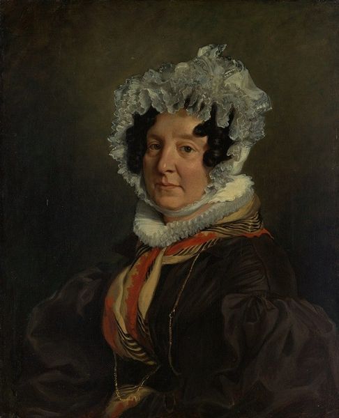 Ferdinand Georg Waldmüller painted this oil on canvas portrait of Josefine Schwartz von Mohrenstern, geb. Vicomtesse Goupy de Quabeck, sometime in the first half of the 19th century. Waldmüller was a famous Austrian painter, and you can see here the institutional forces at play that shaped his art. This portrait exudes wealth and privilege, as one might expect from its subject, an Austrian noblewoman. Look closely and you'll see the fine details of her expensive lace bonnet, the gold jewelry, and patterned shawl draped carefully across her lap. These details help to convey a sense of status and belonging in Austrian high society. Waldmüller was the portraitist of choice for the aristocracy and his style reflected the conservative tastes of the time. To better understand this artwork, we might consult genealogical records, historical fashion trends, and studies of patronage in the Austrian art world. These are just some of the resources that help us to appreciate the social context that shaped this image.