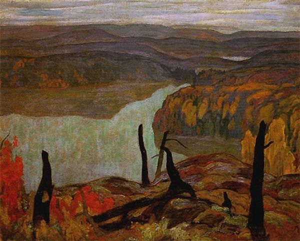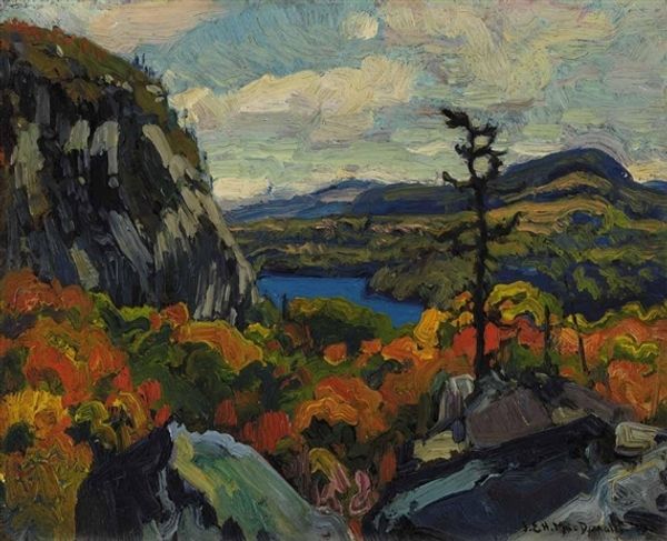 J. E. H. MacDonald, a key member of the Group of Seven, painted *The Solemn Land* to capture the essence and rugged beauty of the Canadian landscape in the early 20th century. MacDonald and the Group of Seven sought to forge a distinct Canadian identity through their art. They moved away from European traditions and instead focused on depicting the raw and untamed wilderness of Canada. This was at a time of growing nationalism and a desire to define what it meant to be Canadian. The emotional intensity in MacDonald’s work reflects a deep, personal connection to nature. MacDonald once said: “It is not by our works we live but by our hopes.” This painting invites us to consider our relationship with the environment and the emotional and spiritual connections we form with the land. It reflects an emerging sense of cultural identity rooted in the unique geography of Canada.