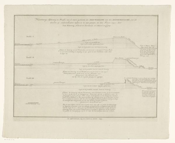 Curator: At first glance, it appears to be a rather clinical depiction, almost detached in its precision. Editor: This engraving on paper, titled "Kaart van de Genootschapseilanden" which translates to "Map of the Society Islands," was created anonymously between 1795 and 1809. It's currently held here at the Rijksmuseum. The work reflects the aesthetic of Neoclassicism. Curator: Given the period, that aestheticization interests me; maps weren't just about wayfinding, they were instruments of power. This neat, gridded representation of Otaheiti and other islands abstracts the human cost of exploration and colonization. Editor: Absolutely. The very act of mapping claims territory, transforming land and resources into commodities ripe for extraction. Note the deliberate inscription indicating its intent for naval use "Stroos, Wallace, Controversy or Weak in de Jaren 1767, 1769, 1809". Curator: It's not just geography being represented here, but also a claim on history, reshaping cultural narratives within that colonial framework. Who were these islands, and who decided to impose new borders? The silent erasure is deafening. Editor: Yes, consider the materials, too: paper, ink, the engraving process itself. These materials, traded and transported, highlight the interconnection of resource exploitation, labor, and the creation of this knowledge-artifact. Curator: It forces us to think about what’s missing—the Indigenous perspectives, the stories disrupted by these expeditions. I would also include consideration for gender since sailors and scientists where all men, whose perspectives were shaped by the gender bias of their period. Editor: Agreed. Its neat precision stands in stark contrast to the messy reality of those encounters, underscoring art’s capacity for both documentation and distortion. Curator: So, let us remember that cartography itself is not neutral, it is a construction of cultural narratives with profound, real-world consequences on how identities and political claims are presented even today. Editor: Ultimately, this "Map of the Society Islands" asks us to grapple with the tangible and the intangible— the making of empire alongside the making of meaning.
