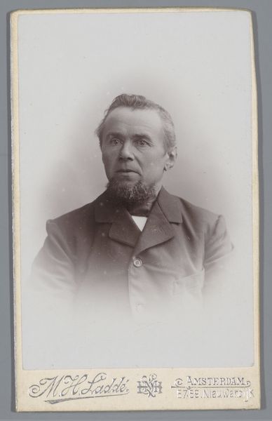 Editor: Here we have an albumen print from between 1892 and 1906, "Portret van een onbekende man" or "Portrait of an Unknown Man" by Johannes Baer. It has such a formal, stoic feel. How do you interpret this work, considering its historical context? Curator: This portrait offers a glimpse into the constructed identities of the late 19th century. The sitter’s rigid pose and carefully cultivated appearance – note the grooming and formal attire – speak volumes about the performance of masculinity and class. What social messages do you think he’s trying to convey? Editor: Perhaps a sense of respectability and authority? He looks like someone of means. It seems very deliberate. Curator: Precisely. Photography at this time was becoming increasingly accessible, but studio portraits remained a significant act of self-representation, especially for the middle classes. The “unknown man” deliberately chooses to align himself with the era's norms. It prompts us to ask: What are the power dynamics inherent in portraiture, and how do these images reinforce societal structures? Editor: So, it's less about capturing the "true" self and more about constructing a public identity? Curator: Exactly! It’s about navigating the complex social landscape, isn’t it? What this image conceals is just as important as what it reveals, pointing towards those often silenced or excluded from such representation. Editor: I never considered the act of sitting for a portrait as such a politically charged act, one reinforcing social and cultural norms, particularly regarding class. Curator: Indeed. Seeing beyond the surface, acknowledging absences, helps us uncover the layers of meaning embedded within seemingly straightforward representations of the past. This really illuminates not only how identities were performed but also who had the privilege of performing them. Editor: I appreciate that expanded understanding, really gives it more depth. Curator: It is critical to examine who is historically given a voice and how. The power is not just in representation but also in the control of the narrative.