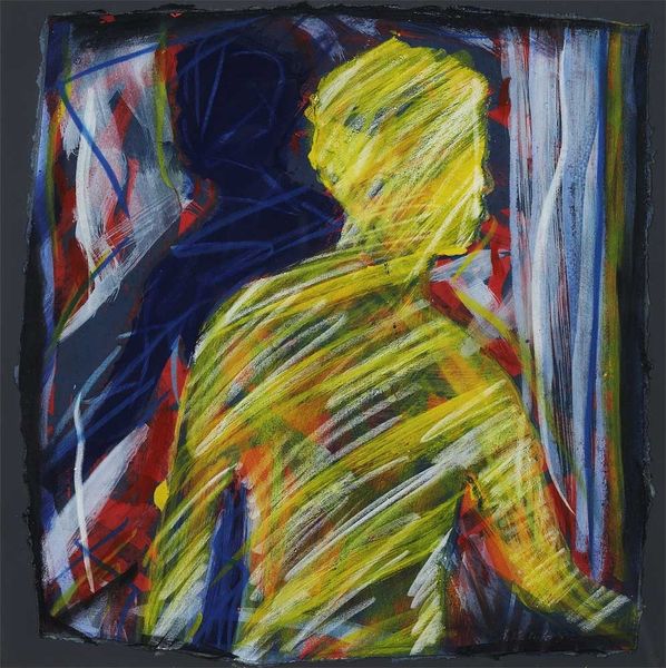 Antonio Palolo made this painting in a flurry of activity, using acrylic paint to conjure up these two figures. The colours feel very intuitive, like he's responding to something he feels inside rather than something he sees outside, in the real world. I'm really drawn to the way he uses the blue. It's not just a backdrop; it’s like a deep space where these figures are floating or moving through. And those red lines shooting out from the yellow figure? They’re so direct and visceral. You can almost feel the energy radiating off the canvas. I wonder if that green rod, or maybe a spear, is symbolic. The marks are all out in the open, they have an honesty about them, there’s no attempt to disguise the process. It reminds me a little bit of Francis Picabia, with that same kind of raw, expressive freedom. It feels like a conversation, a thought process made visible.
