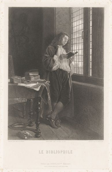 This is Pierre Filloeul’s "The House of Cards," an etching printed on laid paper. The composition uses a restricted palette, with only shades of grey creating tonal variation and depth. Observe how the artist has distributed light across the scene to direct the viewer's eye, casting illumination on the subject. The orderly construction of the cards sharply contrasts with the idleness of youth. Here, the arrangement of cards hints at temporality and precariousness. The house of cards—a delicate structure built through careful arrangement—risks imminent collapse, thereby becoming a metaphor for human endeavor and fragility. Note how the artist uses line and form to establish the subject’s introspective mood. Is Filloeul suggesting that youthful pursuits, however innocent, contain within them the seeds of their own undoing? This play between order and chaos, stability and instability, invites us to reflect on the human condition itself.