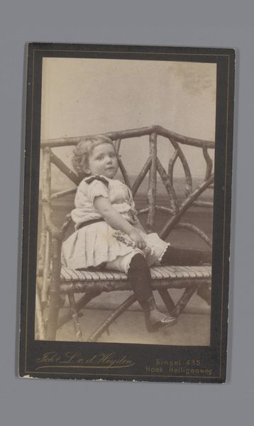 This small photograph captures a child with a cap next to a cart, and was created by the IJpma Brothers. Looking at the image, one can immediately feel transported back to the late 19th or early 20th century in the Netherlands, a time when photography was becoming more accessible. The child's formal attire and the presence of the cart hint at a middle-class background. The IJpma Brothers, as photographers, were part of a growing industry that helped shape how people saw themselves and their society. This image also speaks to the growing importance of childhood as a distinct phase of life. The care taken in posing and dressing the child suggests a desire to capture and preserve a specific moment in their life. This might reflect changing attitudes towards family and the role of children within it. To fully understand this photograph, we would want to explore the history of photography in the Netherlands, family portraiture, and the social history of childhood. These resources would give us a deeper insight into its meaning and significance.