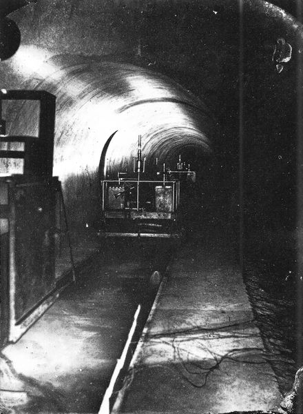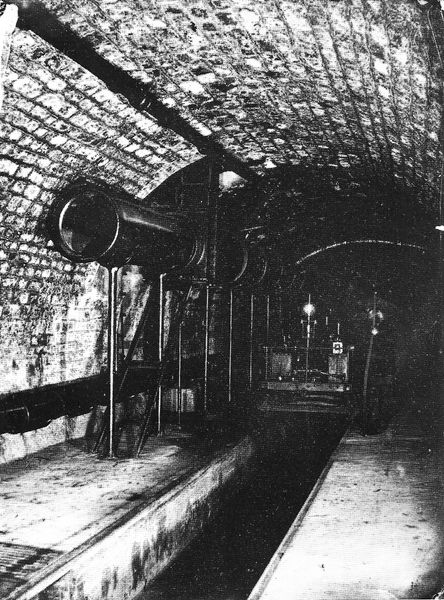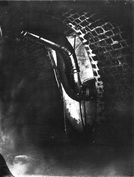 Curator: Here we have Félix Nadar's "Égouts De Paris," a gelatin-silver print taken in 1861. It gives us a glimpse into the Parisian sewer system of that era. What's your first reaction to it? Editor: Well, immediately, it feels claustrophobic and profoundly dark. There’s a heavy reliance on light and shadow that pulls the eye toward the back. Curator: Absolutely, the dramatic chiaroscuro amplifies the sense of being underground, almost as if we are descending into the unconscious itself. Nadar was really pioneering the artistic and symbolic potential of photography at the time, venturing where few artists—and fewer photographers—had gone before. Editor: It's fascinating to think about the logistics of producing this photograph. The specialized lighting required! Think about the technological challenges Nadar would face capturing any detail in these murky conditions. Curator: Indeed. The development of electric arc lamps was crucial, both a technological and, dare I say, symbolic breakthrough that illuminates not just the physical sewers, but also a metaphorical understanding of the underbelly of society. Consider that in that period, Paris was being radically transformed. Nadar shows us an entirely unseen side of the modernizing city, its literal infrastructure, with workers looking like Dantean figures in the underworld. Editor: Yes, but it's more than that. He makes visible the waste and byproducts inherent to modernization, its material consequences. Who paid for all this with labor and material? It shifts from a portrait of technological achievement to an investigation of the labor behind grand infrastructure. Curator: A necessary darkness that, though unseen by most, is vital to the functioning of the city. Nadar invites us to remember that societal advancement always relies on something—or someone—working unseen. It echoes the Romantic obsession with the sublime and the hidden currents beneath the surface of modern life. Editor: Considering how romanticized Paris often is in art of this period, it is useful to study the raw materiality and process, what had to be done to sanitize its image, quite literally here in its sewer systems. Curator: It’s an important reminder that our progress always leaves traces, both visible and hidden. Editor: A critical vision for modern society and its means of material making.