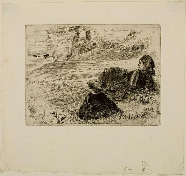 Curator: This mixed-media work is entitled "(Orpheus)," crafted in 1898 by the Australian artist Rupert Bunny. Editor: It has this melancholic, almost mournful quality, doesn’t it? The figure, the desolate shoreline... Curator: Bunny employed watercolor and other media to create it, a relatively humble choice which, given its symbolism, opens a discourse around what we define as valuable art-making. It is so poignant because Orpheus represents art, loss, the feminine divine, and more—juxtaposed against the production choices Bunny made. It demands consideration of the artwork’s place as commodity. Editor: Exactly, this representation goes beyond surface sadness, delving into profound depths about the marginalization and the silencing of marginalized voices throughout history, using Orpheus as an entry point into a discussion around power. This is a story of systemic and institutional inequalities that continue into the present day. How does this composition mirror this inequality and silencing, for example? The clouds feel more gestural and loose in texture while Orpheus' posture appears almost like it is recoiling from his final breath; we witness how vulnerable individuals are in moments of political tension. Curator: It's interesting to think of the contrast between the figure, rendered in relatively soft lines and delicate washes, against the implied power of the vast, turbulent sea. What this represents from an aesthetic perspective is significant—what we decide is suitable in our material explorations and methods is so intrinsically entwined with what statements these choices end up making. Editor: The use of watercolor gives it an ephemeral quality that echoes themes of grief and remembrance. Also, that gesture. It reads so physically to me: an articulation of rage and pain transformed into an internal struggle as his expression twists between agony, guilt and catharsis. How often is emotion a luxury? How often are expressions controlled and policed? It makes the statement here all the more intense in what is otherwise such a soft visual experience, thanks to Rupert's methods of creation. Curator: Considering Bunny's broader oeuvre and historical context helps solidify our reading here too, revealing a conscious subversion through materials. I find the interplay of concept and making especially evocative, offering insights into how meaning is shaped through every layer of creative action. Editor: I appreciate your breakdown of this interplay between conceptualization, method, and resulting emotions. By understanding this art, perhaps we become attuned to identifying these voices and methods as they take place, so we become able to build our community awareness around current struggles for equity today.