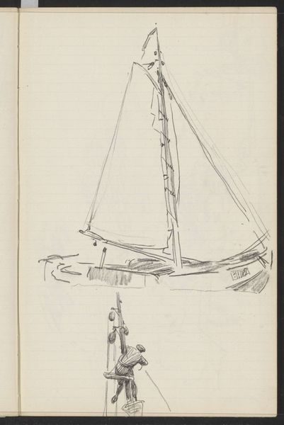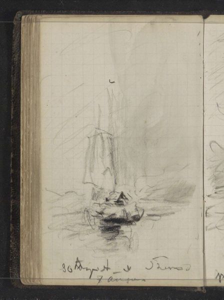 Art Historian: Welcome. Before us is Louis Apol’s pencil drawing, “Schoener Willem Barentsz voor de kust van Nova Zembla,” created between 1880 and 1888. Curator: The bleakness hits me immediately. It's just...wintry. The skeletal ship is so fragile-looking against that stark backdrop. A poignant scene. Art Historian: Apol, a well-known landscape painter, captured this scene on paper. It depicts the Willem Barentsz schooner off the coast of Nova Zembla, the location of the explorer's ill-fated third voyage in 1596, a moment heavy with historical implications of Dutch exploration and scientific endeavour. Curator: I wonder about the romanticizing of that "endeavour" though. Exploration often comes hand-in-hand with exploitation, doesn’t it? I can't help but think of the indigenous populations, impacted by such voyages. Art Historian: Absolutely. Apol's work, rendered with an impressionistic touch, speaks to the evolving national narratives of the Netherlands during his time. Images such as this fuelled national pride, mythologizing the explorers but frequently overlooking the darker facets. Curator: The choice of pencil really amplifies the feeling of desolation, doesn't it? There's no gloss here. The ship appears ghostly and exposed; one could almost interpret it as a critique of reckless ambition. Was Apol perhaps subverting that heroic narrative? Art Historian: Possibly. Though he was mostly commissioned for scenes invoking romantic heroism, the delicate pencil work might suggest vulnerability amidst such perceived strength. The Rijksmuseum displaying it frames how the tale of Dutch navigation continues to be told and re-evaluated within shifting social contexts. Curator: Seeing it presented like this definitely prompts us to engage with it critically. We need to question whose perspectives were prioritised during that time, and how these stories affect our perception now. Art Historian: Indeed. It allows for critical re-assessment of national myths, moving beyond straightforward hero-worship to a more inclusive understanding of our complex past. Curator: Yes, and in doing so, perhaps give tribute not just to so-called heroes, but also to all those absent from the recorded histories. Art Historian: Well said. It seems even in a seemingly simple drawing lies an ocean of narratives waiting to be navigated.