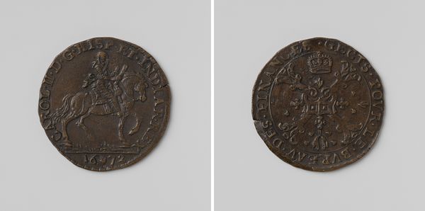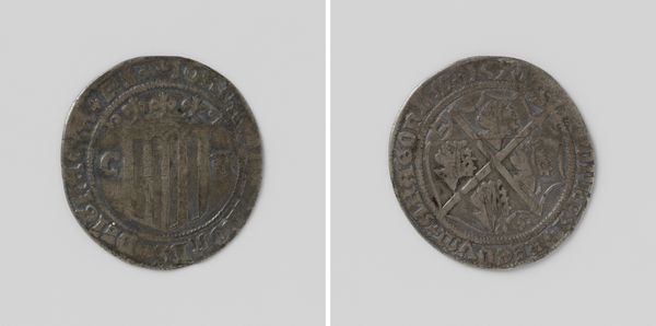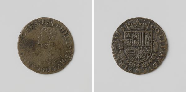 Editor: This is "Johanna, koningin van Castilie, rekenpenning geslagen op last van de rekenkamer der hofmeesters," or, Johanna, Queen of Castile, a jeton minted by order of the chamber of masters, created anonymously in 1506. It's a small, metal carving; the detail is incredible, given the scale. What can you tell me about it? Curator: The fact it's a jeton, a counting token, immediately highlights its material purpose. Forget aesthetics; this object’s creation centers on accounting practices, on the management of resources and power within a royal court. Look at the repetitive inscriptions and symbols. How do you see that influencing the interpretation? Editor: I guess I assumed because it depicts royalty, it was more symbolic, less…functional. Curator: But that's precisely where the interest lies. The metal itself – the specific alloy chosen, the methods of minting and engraving – speaks to the economic infrastructure of the time. Consider the labor involved. What does the skill in miniature speak about the social classes, if the metal as value represents labour? Editor: So you're saying that even something that seems decorative is really about labour, and the value of labor? The detail requires great skill, which translates to specialized labour and therefore inherent value. Curator: Exactly! It collapses distinctions between 'art' and 'artifact'. The token form democratizes portraiture, but at the same time, is it limiting its artistic representation? Is the craftwork undervalued or is the status up-lifted because of it? Editor: That’s such a different way of thinking about it. I'll definitely be thinking about the materials and their creation differently from now on. Thanks! Curator: My pleasure! Seeing beyond the surface reveals hidden stories of production, consumption, and power.