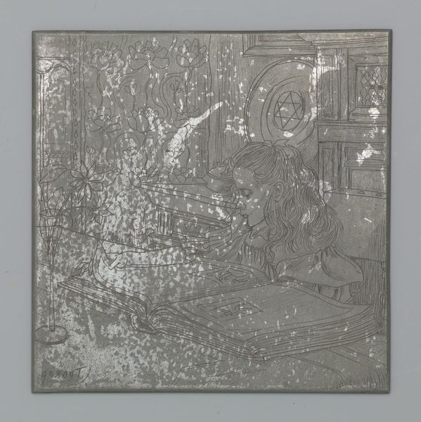 Editor: We’re looking at Julie de Graag's "Two Lobsters," made sometime between 1887 and 1924. It's currently held at the Rijksmuseum. The piece feels quite graphic, almost like an illustration from a children’s book. What strikes you about this work? Curator: Immediately, I am drawn to the symbolic weight these lobsters carry. Lobsters, often associated with the sea and primordial life, can represent both abundance and vulnerability. Note their armored bodies rendered with such detail; yet they exist in an environment of clovers, symbols of luck, perhaps hinting at a precarious existence, their fate hanging in the balance. What do you make of the clovers themselves? Editor: That's a compelling idea. I hadn’t thought about them in opposition like that, luck versus survival. They are meticulously drawn, but something about their sameness also makes me think of artificiality. Curator: Exactly! Consider the tension between the natural world presented—lobsters in their habitat—and the almost decorative stylization. De Graag, through her choice of subject and rendering, creates a dialogue about nature and artifice, wildness and cultivation. The monochromatic palette further intensifies this tension, focusing our attention on the symbolic interplay. The image feels dreamlike, doesn’t it? Editor: It does. So, the lobsters and clovers aren't just images of those things. They're loaded with broader cultural meaning. Curator: Precisely. De Graag invites us to decode this symbolic language. These weren't just sea creatures. She infuses the scene with a narrative reaching deep into cultural memory, prompting us to reflect on humanity’s complex relationship with nature. Editor: I see it now! It's a lot more complex than I initially thought. Thanks, that gives me a lot to think about. Curator: My pleasure. The beauty of art lies in its capacity for continuous revelation.