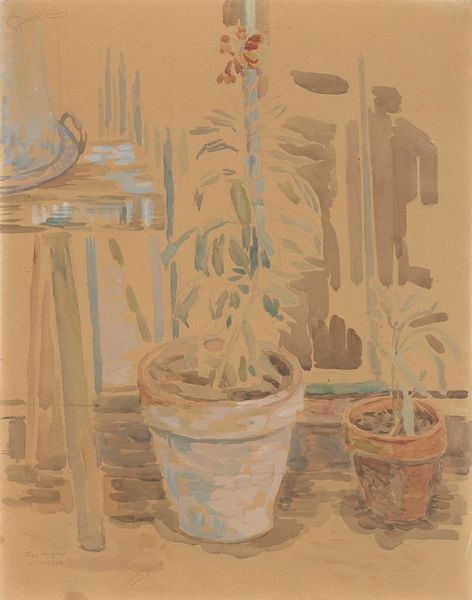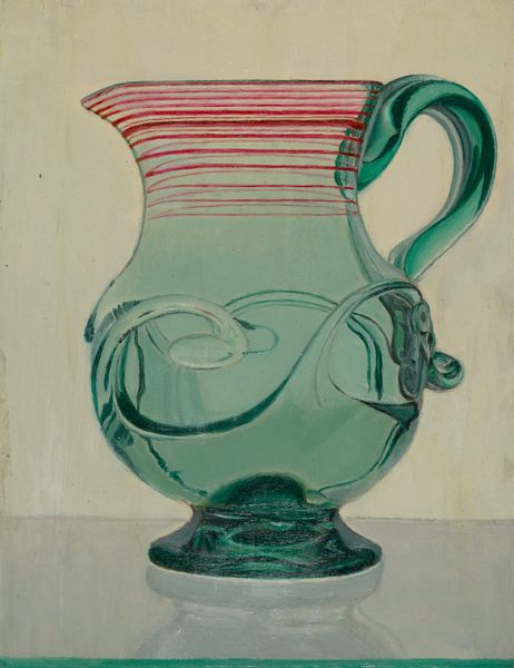 Curator: Immediately, the interplay between stillness and potential movement catches my eye. There's an object poised for… something. Editor: You’re right, there's a quiet tension. This painting by Melissa Hefferlin, titled "Green", features a collection of familiar objects rendered in oil paint. It shows what appears to be a glass demijohn sitting on a wooden chair, with a draped green cloth beside it. What is your read? Curator: Well, the bottle immediately strikes me as an archetype—a vessel of potentiality. Green, of course, often symbolizes growth, life, and renewal. It makes me think of ancient alchemists searching for elixirs. Editor: The use of green is indeed prominent, orchestrating the painting’s tonality. Notice the subtle variations in hue. The artist focuses attention on its shape with its curved profile as well. But to be fair, beyond its symbolism and primary function, the green also acts as a sign. Its transparency means this ‘bottle’ references glass itself. It refers to its chemical composition and production, if one wanted to engage this piece materially. Curator: Interesting perspective. And consider the cloth—draped like an abandoned robe. Is it an echo of human presence, a suggestion that someone was recently here, involved in some task perhaps agricultural? Does it speak to a cultural narrative around labor, cultivation, and the fruits of the earth? The bottle might echo our capacity to gather in order to provide. Editor: That brings out a good point, though I am wondering about how those symbolic references are created in painting. The romantic feel does indeed lend itself to a mannerist sensibility, a play with realism by elongating and twisting forms to create dynamic compositions. Curator: True. So ultimately the items carry psychological weight; there's a story embedded in these objects beyond what is visible to the casual observer, as though Melissa Hefferlin used green pigment to speak. Editor: Exactly. In essence, Hefferlin delivers an intriguing scene with everyday objects rendered formally, though offering something that could represent more, which engages our awareness. I like the fact it offers potential that feels limitless!