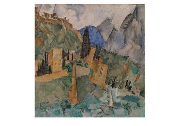 Konstantin Gorbatov made this watercolour, "View of Mar Saba," with these earthy yellows, browns and creams giving the whole piece a sepia-toned look, like an old photograph. You can really see how the artist built up the image with layers, letting each colour peek through, a real testament to the art-making process itself. Looking closely, the texture is flat and smooth, with thin washes of watercolour allowing the paper to show through. The strokes are loose and gestural, especially in the foreground, with these little figures that look like ants! There are so many expressive marks making up this dramatic landscape. It reminds me a little of Emil Nolde's landscapes, with its use of bright colors and bold brushwork. Both artists shared a passion for capturing the raw beauty of nature, and weren't afraid of a bit of ambiguity.