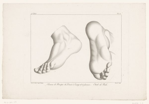 Louis Charles Ruotte composed "Compositie met drie handen" using etching techniques. Without knowing the date of its creation, we can only speculate about the social context of this etching, but studies such as this one are part of a historical context that saw the rise of academic art. Here, the hand, a crucial instrument of human expression and labor, becomes an object of study, categorized and presented for dissection. It also has a gendered dimension; the text refers to elements of drawing for the use of young women. What does it mean to train young women in the art of drawing? This practice was laden with implications about gender, class, and the expected roles of women in society. It was about imparting skills, shaping sensibilities, and reinforcing social norms, all through the act of artistic creation. The artist invites us to consider the power dynamics inherent in the gaze, in representation, and in the act of studying the human form.