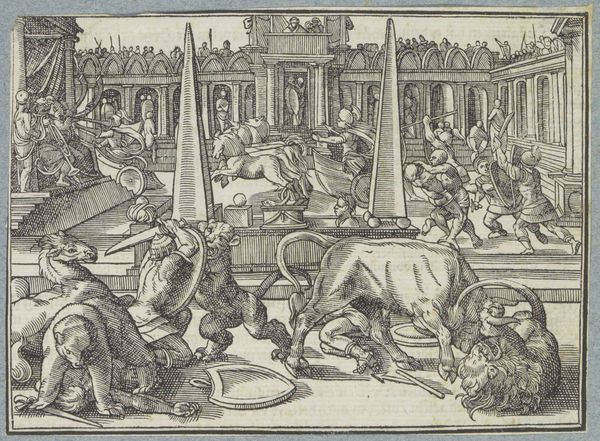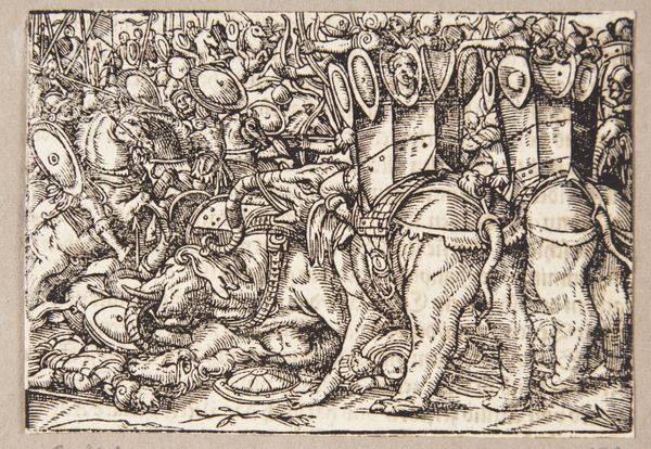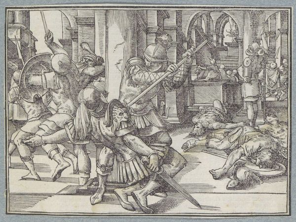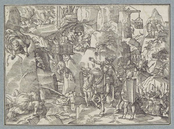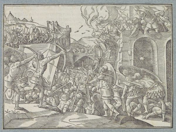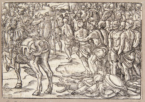 Editor: This engraving, “Mannen, vrouwen en kinderen gekruisigd of doodgestoken,” which translates to "Men, Women, and Children Crucified or Stabbed to Death," was created by Christoffel van Sichem I in 1574. It's a brutal depiction. What do you see in this work? Curator: This print resonates powerfully with the visual language of trauma and violence that was common during the religious wars of the 16th century. But beyond simply illustrating an event, it serves as a stark commentary on power, oppression, and the deliberate targeting of vulnerable populations – women, children, entire communities. Editor: How so? Curator: Consider the context: the Dutch Revolt was raging. Van Sichem, though working later, echoes the propaganda circulated during the period. What visual cues tell you that this is less about historical record and more about political messaging? Editor: The expressions are… generalized? Almost like caricatures. And there’s a lot of emphasis on the helplessness of the victims. Curator: Precisely! These details are key. The print is implicating the viewer, challenging them to consider their own complicity, or resistance, within these power structures. How does this imagery function as a form of resistance or protest in and of itself? What conversations can we have about this piece in today’s society? Editor: That’s… chilling. I didn’t realize how relevant this piece could be, even centuries later. Curator: Exactly. Art serves as a crucial lens for understanding historical and ongoing patterns of violence.